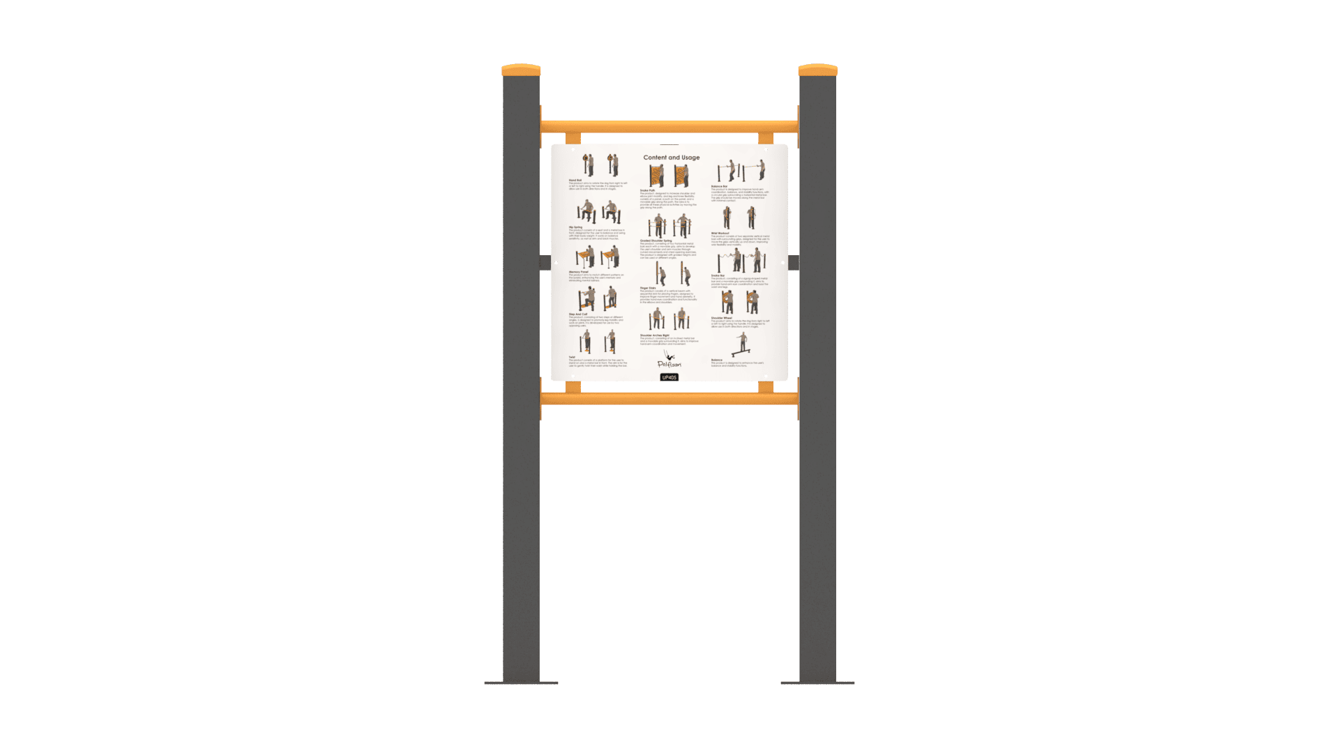 İleri yaş egzersiz seti SS105 ile ilgili genel kullanım kurallarının ve tavsiyelerinin yazılı olduğu bilgilendirme tabelasıdır.